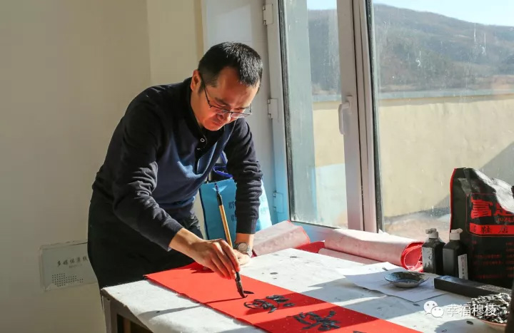 11月23日上午,奋斗水库首批移民喜迁新居,来自我市书法家协会的书法家们以现场书写对联的形式为移民送上祝福,恭贺乔迁之喜。