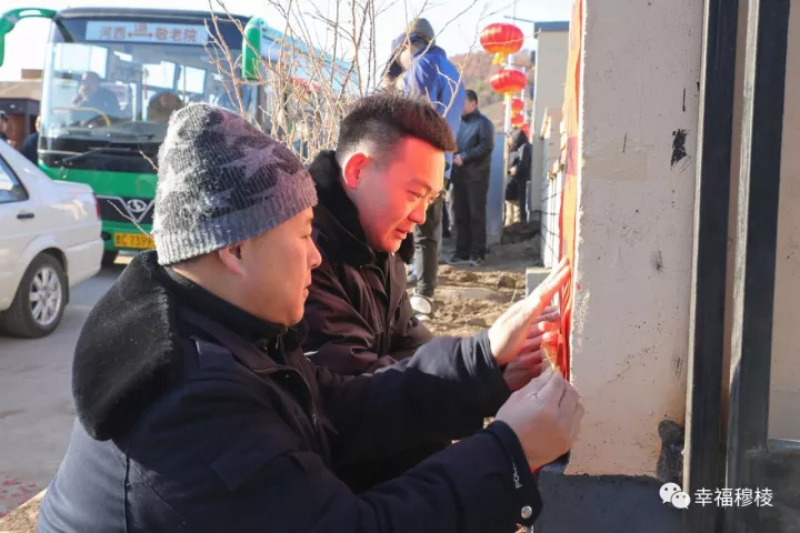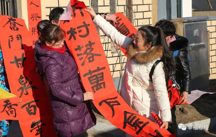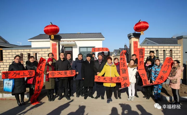 现场气氛喜庆而热烈,领取到对联的移民们个个喜笑颜开,欢天喜地地将火红的对联贴到了新家大门上。
