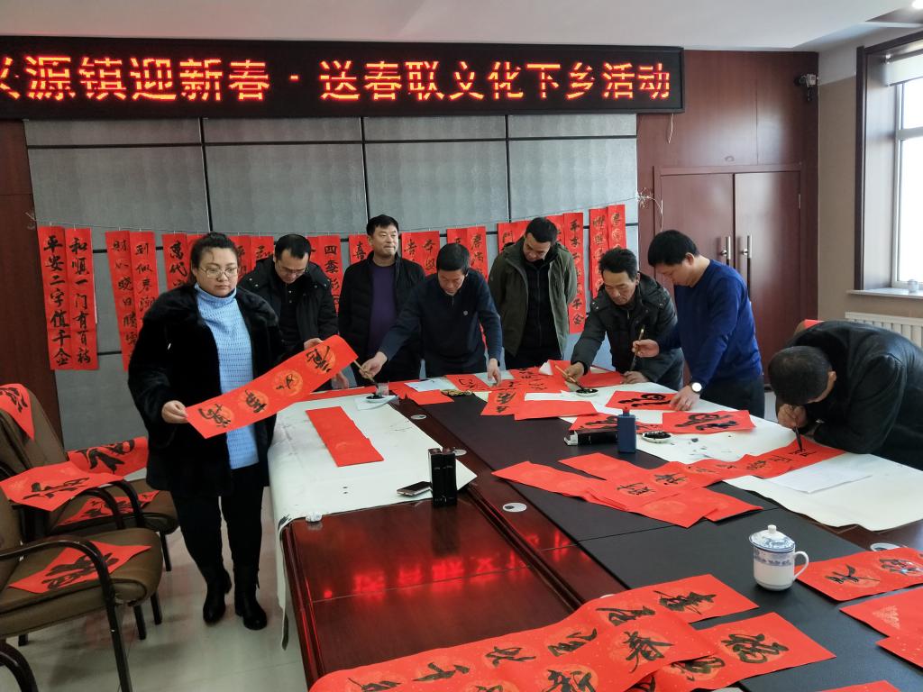 2月6日上午,兴源镇联合市文联开展了“迎新春·送春联”文化下乡活动。镇党委副书记吴波,市文联副主席陈作鹏,市书法家协会副主席李英双及会员、兴源镇书法爱好者十余人参加了活动。